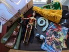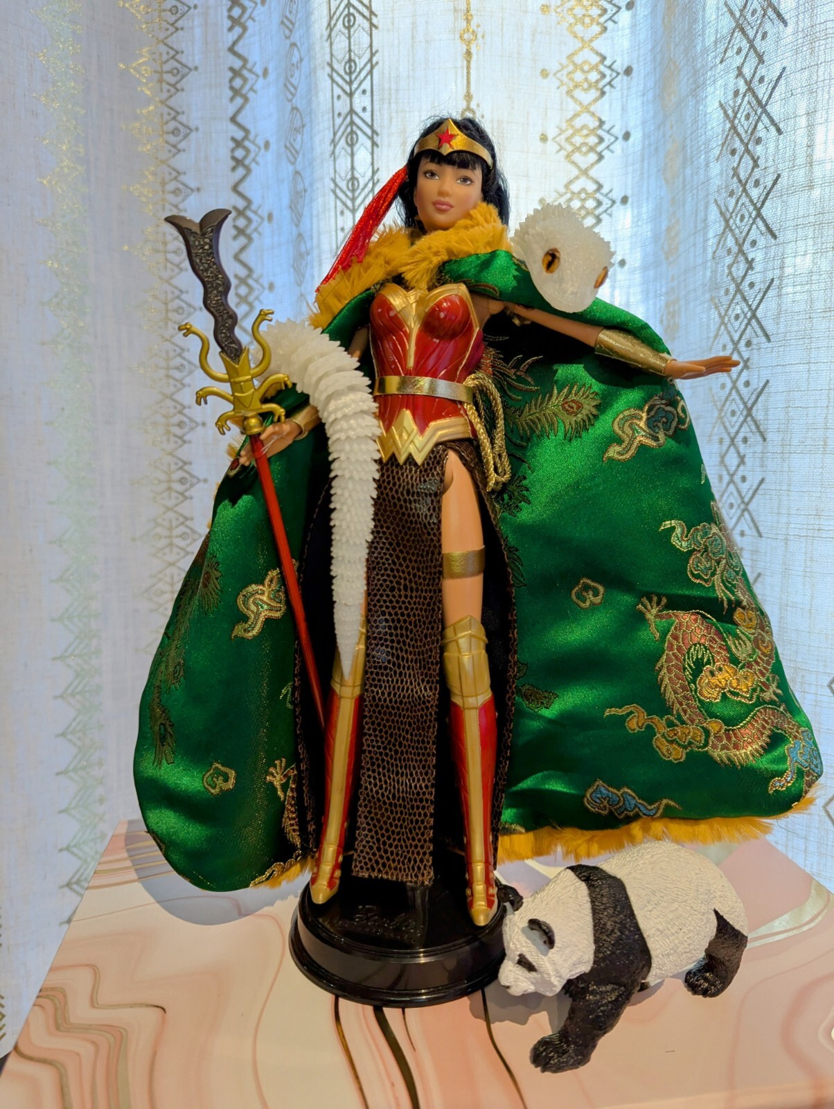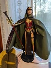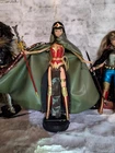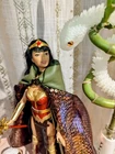 OOAK Chinese Wonder Woman Doll. Celebrate the Year of the Snake with Chinese Wonder woman...Peng Deilan. This hybrid custom doll represents what we've all been waiting for, a movie or TV Series about... Peng (originally known as Green Snake), is the Wonder-Woman of China, a member of the Justice League of China. Peng is actually a snake whose ability to harness qi allows her to assume a humanoid form. Her companions white snake and panda are in attendance with her Amazonian family. Asian Barbie as Chinese Wonder Woman. Mattel and original parts. Includes: 1 doll, 1 stand, 1 unique sword & 1 snake spear. 1 crown. 1 glow in the dark 3D print white snake, 1 panda. Two original handmade 2-sided capes: 1 orange faux fur with Asian print. 1 faux-green leather with sequin snake ombre print. One pink and gold print keepsake box. Two comic books. Dolls corset cannot be removed. Styled to fit. Small parts. For adults. Not for children. Designed by Dawn at Impulse Buys Shop.