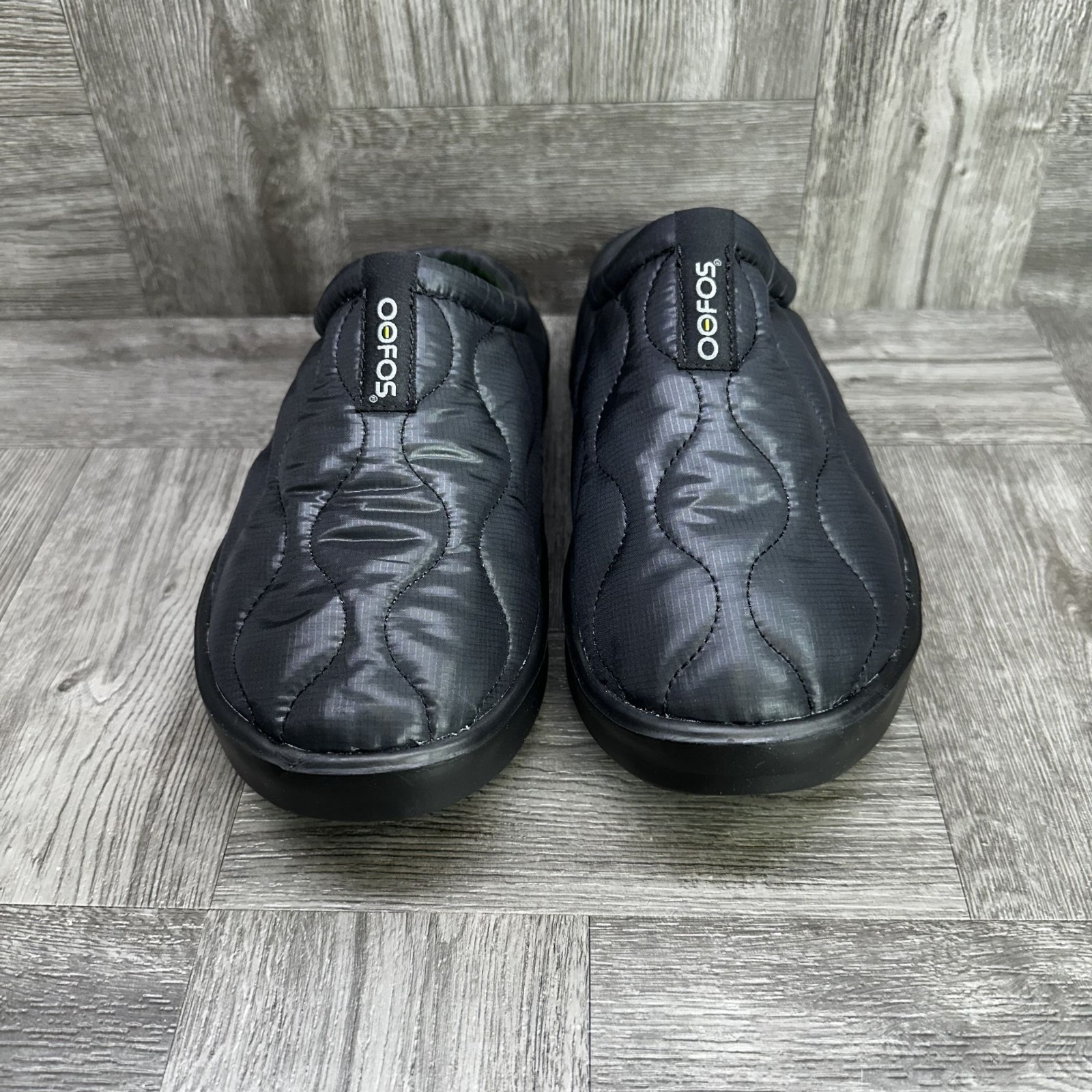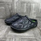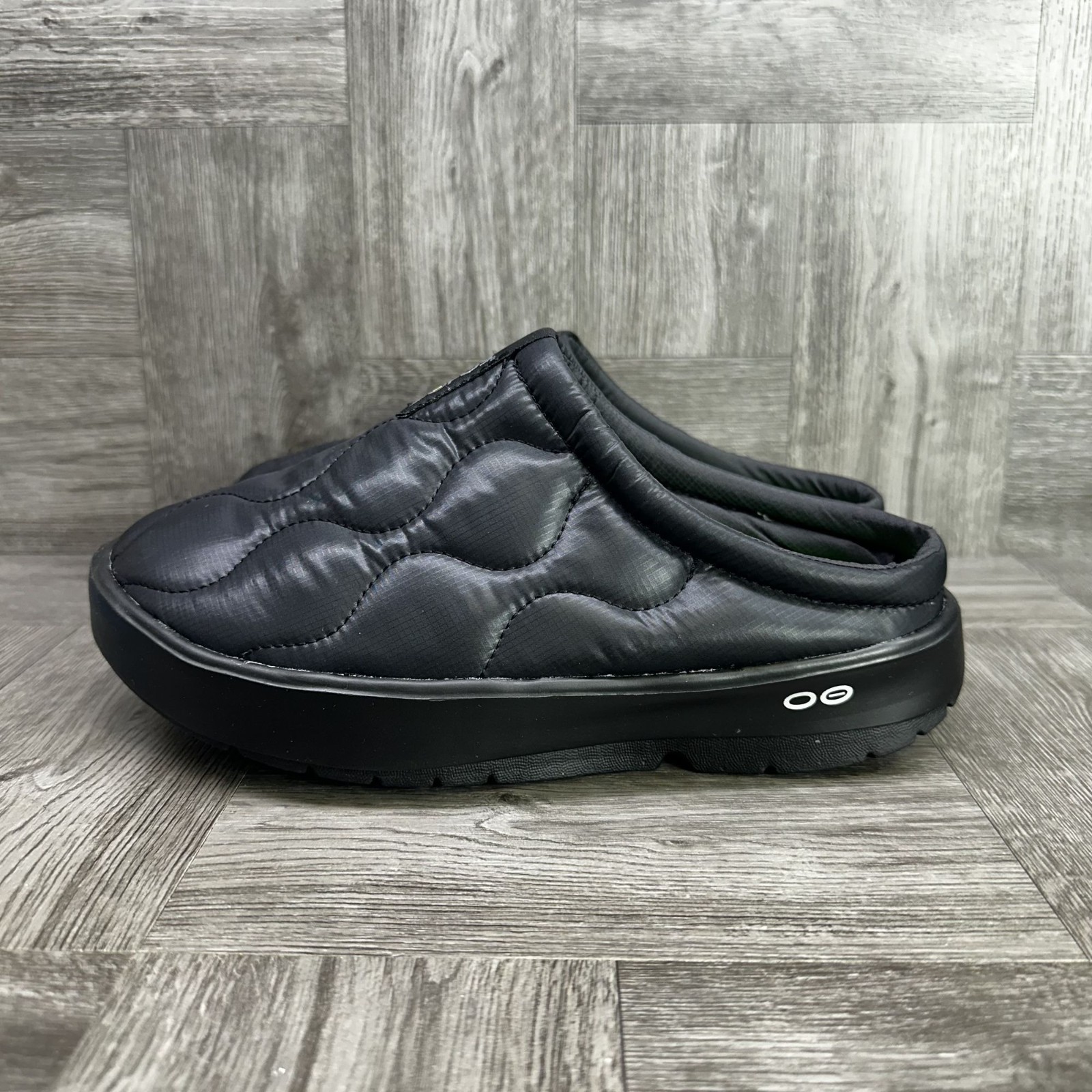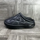 The OOFOS Oocoozie Thermo Mule Women's size 8/EURO 39 Slip On Black Shoes are comfortable and stylish slip-on sandals perfect for casual occasions. With a flat heel and round toe shape, these shoes are designed for walking and provide all-day comfort. The black synthetic upper material and rubber outsole make them durable and easy to wear in various seasons like summer, fall, and spring. The OOFOS brand logo adds a touch of style to these practical and versatile mule shoes. Made in Vietnam, these shoes are a practical and fashionable addition to any woman's wardrobe.