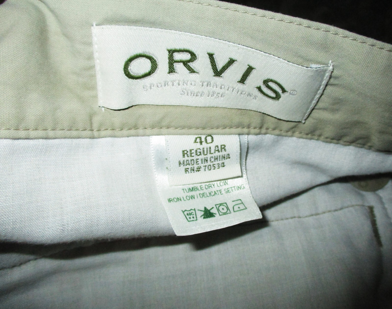 See my EBAY STORE at “SAMTPC53” to view 100’s more of my Men's SHORTS!!! Combine Shipping: (on multiple items you pay full price on heaviest item first and then HALF PRICE shipping on ALL other clothes items. Men's Nylon Cargo Shorts . Brand: ORVIS. Description: men's 100% Nylon ORVIS cargo shorts, zipper and button in front, belt loops, 3 front side pockets, 2 rear pockets w/ zippers, 2 side leg pockets, see pics. Color: Tan. Size: 40 (please see measurements). Measurements: 40" waist, 9" inseam, 12.5" rise. Material: 100% Nylon. Condition: Very Good condition.
