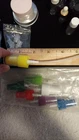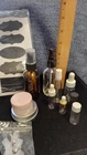 Assortment of 19 lables,6 clear bottles with roller ball and covers,7 colored glass bottles with roller ball and covers,3 small colored glass bottles with roller balls and covers,10 assorted new and used bottles and containers all clean and 7 colored spray tops .