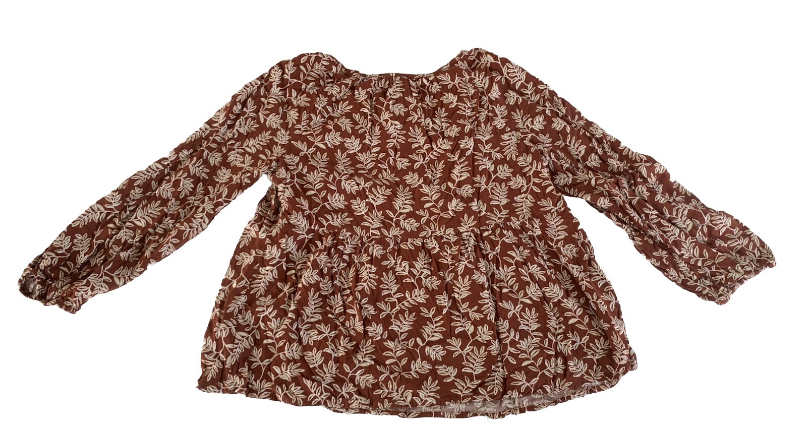 Old Navy Women's Boho Crop Peasant Top Size: Small. Length (Shoulder to Hem)- 21". Chest (Underarm to Underarm X 2)- 34". Features & Accents: Brown background with leaf Print overall. Balloon sleeves with elastic at wrists, Scoop neck with hassle tie, Crop top, Peasant, Boho Vibe. Condition. Pre owned. Nice, Clean. Smoke Free Home. Same day shipping if purchased by 3:00 PM, EST. International Sales Ship through Ebay International Shipping Program. Free Returns. We truly try to disclose all information on items we list. However if we miss something, please contact us before leaving negative feedback and allow us to resolve the problem or issue a returns. Your choice. Thank you.