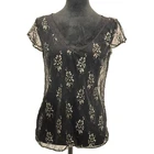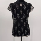 With a whisper of elegance, this black floral lace top from Old Navy weaves tales of charm and sophistication. Adorned with intricate lace patterns, it dances gracefully with each step, offering a delicately feminine touch. Its sheer allure invites one to explore the stories woven within its threads. • V-neckline with lace trim • Cap sleeves • Sheer floral lace • Lightweight and breathable fabric • Easy to layer with camisoles or jackets Top to bottom = 23 inches Width = 17 inches