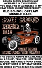 We use high quality Gildan 50/50 sweatshirt hoodies and print them ourselves right here in the USA. Please use the size chart that is shown in the Ebay pictures for this listing. It is quite accurate, and it will help you order the correct size for your purchase. No one offers you a bigger selection of options than we do! Each hoodie sweatshirt is custom printed per your order, it is not simply pulled off a shelf. This listing offers 240 different variations. It is a unique customized hoodie sweatshirt that you, as the customer, design yourself by starting with choosing the size and the color, and then on to other options including whether it is a single print with the full size design printed on the back only, or double print with the full size design on the back and the logo size design as shown in the listing printed on the front over the heart. Also, you may choose to add one of the two different pairs of sleeve print designs offered for your sweatshirt. For the final over the top option, you can have Skulls printed on the hood so when you're wearing the hood up it looks like the hood is ragged and torn letting you see the skull of the person wearing it! Buying more than one shirt? Don't worry, I will combine the shipping to save you money. Be sure to click the "Save this seller" button. For more cool short & long sleeve t-shirts, tank tops, sweatshirts, hoodies, zip hoodies, casual mechanics work shirts and more, click on: "Sellers other items". Then click the "category button" to choose the type of designs you like. If you have any questions, feel free to ask. Remember, our single print pullover hoodies and zip hoodie sweatshirts feature the full-size design printed on the back only. Our double print pullover hoodies and zip hoodie sweatshirts all feature the full-size design printed on the back, and the smaller logo size design shown, printed on the front over the heart. A double print DOES NOT mean the full size design is printed on the front and the back. (If for any reason Gildan becomes unavailable, we will maintain our high quality standard by using Hanes, Fruit of the Loom or an equivalent in sizing and fabric weight.)