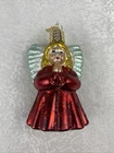 Girl Praying Angel With Wings Red Gown Glass Christmas Ornament Pre-Owned Review Photos For Details And Measurements It Has Written Date On His Back