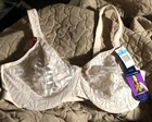 This beautiful Olga minimizer bra is perfect for any occasion. The bra features a gorgeous floral pattern on a beige satin fabric, with a bra strap and hook & eye closure. The underwired bra has a slimming effect and provides full coverage, with adjustable straps for the perfect fit. Made with a nylon blend material, this bra is both comfortable and durable. The soft cups and adjustable band size ensure a perfect fit, while the sheer leaves add a touch of elegance. This bra is perfect for any woman, whether she's looking for a comfortable everyday bra or a special occasion bra.