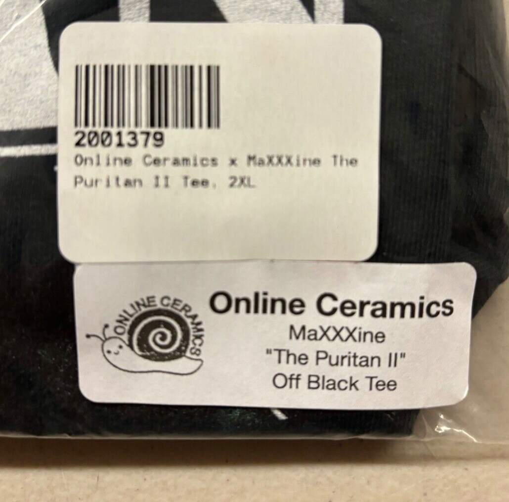 Online Ceramics & A24 MaXXXine The Puritan II Off Black Tee Short Sleeve T-Shirt 2XL XXL Brand New & Unworn Still sealed directly from Online Ceramics Limited Edition & Out of Print The first two pictures are stock photos. You will receive the bagged item as pictured.