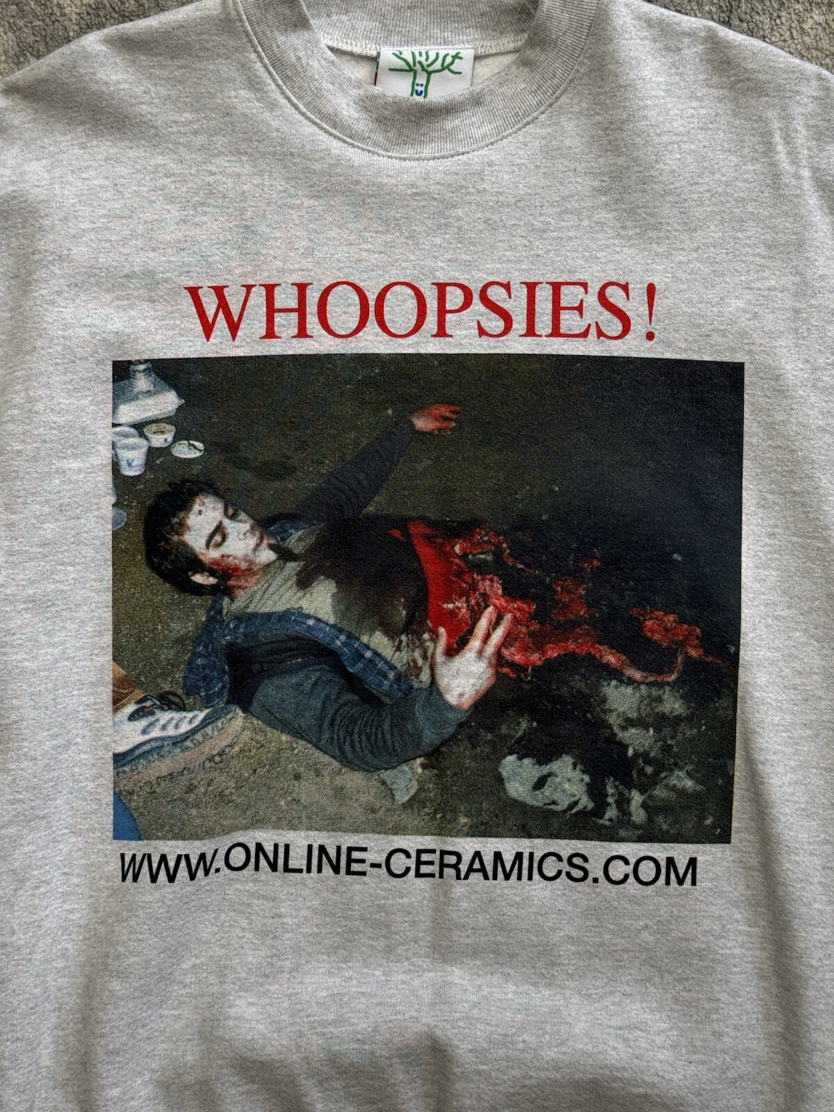 OOP Online ceramics x Eli Roth’s Cabin Fever “WHOOPSIE” Crew Neck sweatshirt 14oz Heavy Fleece Color: Ash Gray SIZE: Medium Brand new. No Rips/holes/stains Ships in original Online Ceramics packaging