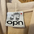 The Online Ceramics X OPN Oneohtrix Point Never Hoodie in Tan Beige, size XL, is a stylish and comfortable pullover hoodie perfect for men who appreciate graphic prints and unique designs. Made of cotton and featuring a relaxed fit, this hoodie is machine washable and suitable for all seasons. The hoodie is adorned with the Online Ceramics logo and is ideal for activities such as walking, skateboarding, and hiking. Its oversized and heavyweight design, along with its hooded feature and pockets, make it a practical and trendy choice for those who enjoy a blend of art, punk, and hip hop styles in their wardrobe.