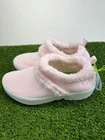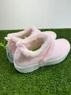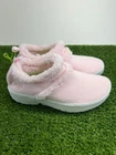 The Oofos OOcoozie Low Recovery Shoes for women in size 8 are designed for ultimate comfort and performance. Featuring a slip-on style with a closed toe and low heel height, these shoes are perfect for activewear or casual occasions. Made with sherpa fleece fabric, the shoes are lightweight, cushioned, and breathable, making them ideal for wearing in all seasons. The pink and white color scheme with the Oofos logo adds a stylish touch to these cozy and warm shoes that are suitable for outdoor activities and sports.