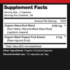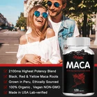 Effects: Energy & Endurance, Testosterone Booster Ingredients: Maca Directions: Take 2 capsules once daily after a meal. Shipping: Ships within 48 hours on working days. Shelf life: 2 years Description: Superior Absorption and Potency - Organic Maca Blend is gelatinized (broken down) for easier absorption and higher bioavailability. It contains black pepper extract to enhance absorption, ensuring your body gets all the benefits of maca. Black, red and yellow maca roots come together to unlock the extraordinary potential of maca root. Energy, Mood, Relaxation - Maca is grown in the Peruvian Andes and is known for providing natural energy, hormonal balance, and positive mood. Maca has also been shown to improve immune function, reduce fatigue, and promote relaxation. HIGH QUALITY - Produced in a GMP certified facility using non-GMO ingredients and rigorously third-party lab tested to ensure maximum purity and precise potency. Document