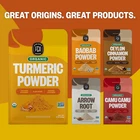 ORGANIC TURMERIC POWDER (CURCUMA LONGA) - 8oz Resealable Bag IMPORTED FROM INDIA - This bag contains certified organic, turmeric powder harvested from turmeric plants in India. HEALTHY & DELICIOUS - Add some spice to your day with our organic turmeric root powder. This easily recognizable, vibrant yellow-orange powder has long been a staple in South Asian and Middle Eastern cuisines. Commonly used for curries, the root vegetable is also great in soups and stews, or sprinkled over some scrambled eggs. CERTIFIED USDA ORGANIC & NON-GMO - All our products are certified USDA Organic and certified Non-GMO. Look for the USDA Organic and Non-GMO Project seals on our products! Product Description Explore and elevate your recipes with exciting additions! Add to Cart Add to Cart Add to Cart Customer Reviews 4.5 out of 5 stars 1,545 4.5 out of 5 stars 10,147 4.6 out of 5 stars 3,013 4.5 out of 5 stars 1,105 4.5 out of 5 stars 1,545 4.3 out of 5 stars 46 4.6 out of 5 stars 817 Price — $19.99 $ 19 . 99 $14.99 $ 14 . 99 — — $15.99 $ 15 . 99 — Sourced From India Sri Lankia India Zimbabwe Brazil India Chile USDA Organic ✔ ✔ ✔ ✔ ✔ ✔ ✔ Non-GMO ✔ ✔ ✔ ✔ ✔ ✔ ✔ GMP Manufacturing ✔ ✔ ✔ ✔ ✔ ✔ ✔ Flavor Earthy, peppery & bitter Delicate & sweet Peppery & warm Tangy & citrus-like Tart, sour & cherry-like Tangy, bitter, sweet & sour Sweet & slightly tart