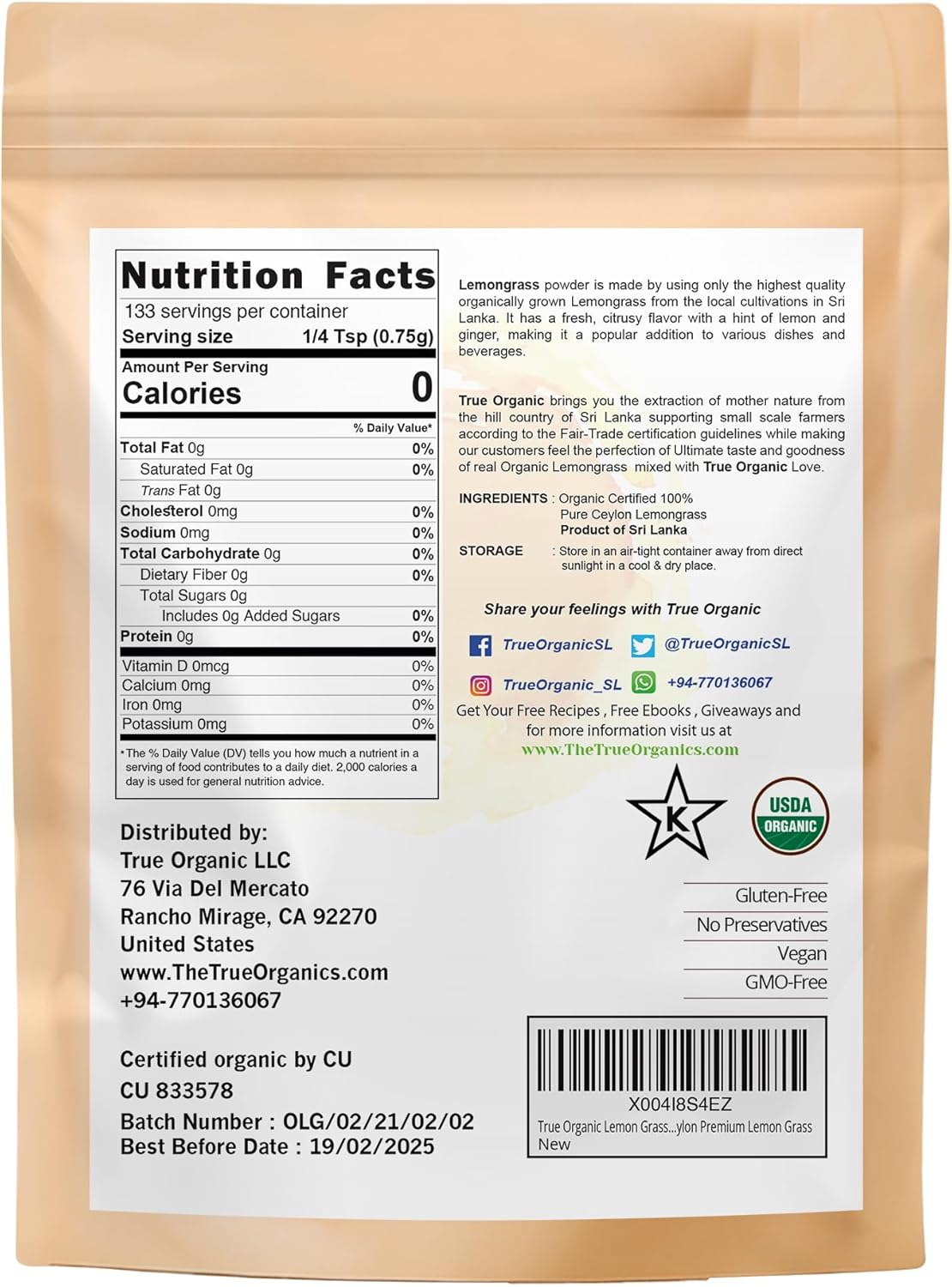 Store New Arrivals Add to Favorite View Feedback Contact Lemon Grass Powder 3.5 Oz, Certified Organic USDA Certified, Non-Gmo, Pure Ceylon Premium Lemon Grass Description Item Package Quantity 1 Package Information Bag Item Form Powder Package Dimensions 7.99 x 4.65 x 2.72 inches; 3.84 ounces The premium quality ceylon lemongrass powder, organic lemongrass powder USDA Organic Certified Ceylon Organic Lemongrass Powder has been hand-picked fresh of maximum flavor and taste. This Ground Ceylon Lemongrass Powder locked in craft paper bags. No Need to Scruple About Gluten, Or Allergens: We live for our customers & respect your needs! This is why ALL of True Organic’s products including Organic Ceylon Lemongrass Powder come into NO contact with gluten, soy, peanuts, tree nuts, or GMOs. Your True Organic Ceylon Lemongrass Powder is packaged from a USDA Certified Organic Farm in Sri Lanka. Our Ceylon Lemongrass Powder is Grown only in Sri Lanka (Ceylon) region, our farmers nurture, harvest, and package all our Organic Ceylon Lemongrass Powder by hand. a We take great pride in being able to support and foster not only the farmers who produce our Ceylon Lemongrass Powder Organic but also their families and local communities. We hope that through True Organic’s products including Organic Ceylon Lemongrass Powder, our farmers and their families continue to benefit. Just scroll up, Click the Buy Button Now to Grab Your USDA Organic and FSSC 22000 certified Our Ceylon Lemongrass Powder Organic / Ground Lemongrass. Our Ceylon Lemongrass Powder will make more delicious recipes and meals. Our Organic Ceylon Lemongrass Powder is Grown only in Sri Lanka / Ceylon region, our farmers nurture, harvest, and package all True Organic Ceylon Lemongrass Powder Products by hand. We take great pride in being able to support and foster not only the farmers who produce our Pepper, Ginger, Lemongrass Powder, Moringa, Nutmeg, and Others but also their families and local communities. Our Bulk Organic Ceylon Lemongrass Powder is Processed in an FSSC22000, NOP USDA, EU ORGANIC, KOSHER, JAS, and Halal certified factory. Just scroll up, and Click the Buy Button Now to Grab Your USDA Organic and FSSC 22000 certified True Organic Ceylon Lemongrass Powder 3.5 ounce bag. ABOUT US We offer the best prices around on high quality products. Our E-store includes media such as books, movies, music and games while offering electronics, toys, sporting apparel, clothing, tools, general home, garden items and more. SHIPPING We are always working hard to ensure your package arrives as soon as possible. Please understand that some factors like weather, high postal traffic, and the performance of shipping companies are outside of our control. We offer free shipping to the lower 48 states and ship within 2 business days of payment, usually sooner. We do not accept P.O. Boxes. Please provide a physical address. RETURNS We offer a 30-Day Return Policy on items which you are not completely satisfied with. You have the option for a full-refund or an exchange of the item. No returns are available on items shipped outside of the USA. PAYMENT We accept PayPal. CONTACT US This page content is yet to come Please ad us to your favorite seller and visit again later Thank You CUSTOMER SATISFACTION We try our very best to make sure every customer is completely satisfied. If there's a problem, message us! We're happy to help.