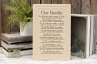 11 1/4 x 16 3/4large our family wall plaque. We are known for our high quality and our design team creates innovative, visually appealing and spiritually uplifting encouragement products that will appeal to you. Every product we sell has a well-chosen Scripture incorporated into the design. In addition, each Lighthouse product comes with of three booklets - power of the cross, your new life, or the source of hope. Each of the booklets shares a message of hope from God's word. plaque features textured cream design Made of reconstructed concrete to simulate natural-cut stone with ready to use wall hanger Measures approximately 11.25 x 16.75 Inches; Display as a decorative wall piece Your purchase helps support orphans and children with special needs in Ghana, Africa