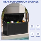 Outdoor Storage Box 80 Gallon Patio Deck Resin Black Table Wickered Side Handles Product Description NOTE: Professional Installation would be Highly Recommended. Description: 1. Color : Black 2. Features : Hydraulic Support, Secure Lid, Side Handles, Water/Weatherproof 3. Material : Polypropylene and Resin 4. Mounting : Free Standing 5. Recommended Uses For : Bench, Storage, and Table 6. Room : Garden, Patio, Pool, and Yard 7. Shape : Rectangular Features: Spacious, Strong, and Multi-Purpose Design With an impressive 485 lb weight capacity , our box is built to handle both heavy loads and daily use . Our large interior provides ample space to store everything. Our reinforced structure allows it to function as a bench , comfortably seating adults while maintaining its sleek, modern appearance. Perfect for gardens, patios, poolside areas, and backyards , our versatile storage solution offers both practicality and style. Weatherproof, Waterproof, and Built to Last Crafted from high-quality polyresin to withstand harsh weather conditions year-round. Our waterproof and UV-proof material protects against rain, snow, sun exposure, and humidity . Our wicker-style texture adds elegance while ensuring exceptional durability for any outdoor setting. Unlike wooden or metal storage units, our rust-proof and fade-proof design offers long-lasting performance with minimal maintenance . Hydraulic Support for Easy and Safe Access Designed for effortless opening and closing . Our built-in hydraulic support prevents sudden lid slamming. Safe for kids and adults alike . Allowing hands-free access to your stored items to ensure convenience when loading or unloading. Our secure lid keeps belongings protected from dust, dirt, and outdoor elements to maintain condition over time. Our smooth hydraulic system ensures hassle-free operation every time . Easy to Move and Simple Assembly Equipped with built-in side handles . Our box is easy to lift, reposition, and transport as needed. Our lightweight yet sturdy construction ensures effortless mobility . Our package includes assembling hardware kits and a user-friendly instruction manual , making setup quick and straightforward . Our low-maintenance design requires just a simple wipe-down to keep it looking pristine. Dimensions: 1. Maximum Weight Capacity : 485 lb 2. Overall Dimensions : 45.3"L x 18.4"W x 22.9"H 3. Weight : 28 lb Package Included: 1. 1x Outdoor Storage Box 2. Assembling Hardware Kits 3. Instruction Manual Book *) EXCLUDING PADLOCKS Shipping 1. Normally the item will be dispatched within 1 business day if payment is cleared before 12pm PST. 2. Please verify the correct shipping address in your PayPal account before making the payment. We only dispatch the item to the address that is sent to us at the time of checkout. 3. We don't ship to Hawaii, Alaska, Puerto Rico, APO/FPO/PO Boxes. 4. We don't provide local pick-up service. 5. Normally we will use USPS, UPS, FedEx & LTL to dispatch items. Payment 1. We accept PayPal and credit cards. 2. We will ship to the confirmed PayPal shipping address that is provided with the payment only. Return 1. 30 days Money Back Guarantee. 2. Please contact our customer service to receive a RMA form first if want to return the item. 3. All returned items MUST in new condition with the original package. Contact If has any problem, please contact us by sending an eBay message. Our customer service will resolve the problem as soon as possible. On May 26, 2024 at 03:52:38 PDT, seller added the following information: On Jun 10, 2024 at 03:56:00 PDT, seller added the following information: On Oct 29, 2024 at 01:26:30 PDT, seller added the following information: On Nov 5, 2024 at 00:54:55 PST, seller added the following information: On Nov 13, 2024 at 04:50:45 PST, seller added the following information: On Jan 29, 2025 at 20:23:18 PST, seller added the following information: On Jan 29, 2025 at 20:50:13 PST, seller added the following information: On Jan 29, 2025 at 23:41:11 PST, seller added the following information: On Jan 30, 2025 at 02:27:41 PST, seller added the following information: On Feb 3, 2025 at 02:50:59 PST, seller added the following information: On Feb 3, 2025 at 19:03:42 PST, seller added the following information: