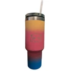 Ozark Trail 40 oz Vacuum Insulated Stainless Steel Gradient Tumbler Laser Carved Description: Stay hydrated with the Ozark Trail 40 oz Vacuum Insulated Stainless Steel Tumbler. This high-quality tumbler features a vibrant gradient finish with intricately laser-carved designs, ensuring a unique and attractive look. Designed for hot and cold beverages, its vacuum insulation keeps drinks at the perfect temperature for hours. Key Features: • Capacity: 40 oz, perfect for long trips or daily hydration. • Material: Durable stainless steel construction. • Insulation: Vacuum insulated to keep drinks cold or hot for extended periods. • Gradient Design: Stylish ombre finish with laser-carved designs for added appeal. • Handle: Comfortable integrated handle for easy carrying. • Lid & Straw: This product includes a tight-seal lid and reusable straw for spill-proof use. Condition: Unused, like-new condition. No original packaging.