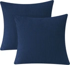 PHF 100% Cotton Waffle 26" x (Pack of 2), Bright Navy Blue Product Details Pattern: Solid Material: Cotton Color: Bright Navy Blue Product Dimensions: 26"L x 26"W Style: Traditional Brand: PHF Theme: Elegant Shape: Square Number of Items: 2 Special Feature: Skin-Friendly, Decorative Number of Pieces: 2 Room Type: Bedroom, Home Office Product Care Instructions: Machine Wash Pillow Type: Throw Pillow Occasion: Home Closure Type: Overlap Closure Recommended Uses For Product: Home Weave Type: Waffle Weave Manufacturer: Pacific Home Fashion Unit Count: 2.0 Count Is Euro Pillow Size: Yes Item Weight: 1.34 pounds Country of Origin: China Item model number: waffle euro sham pillow covers Is Discontinued By Manufacturer: No Fabric Type: 100% Cotton Batteries required: No 100% Cotton 100% Natural Soft Cotton: PHF pillow sham covers are made of 100% selected natural cotton, soft, safe and skin-friendly for you and your family. What's more, our premium 290 GSM cotton fabric feature proper weight and thickness, offering luxury feel and appearance of a qualified pillow sham cover Waffle Weave Texture: Classic yet stylish waffle weave design features three-dimensional, puffy and elegant appearance, brings casual sophistication and create a soothing retreat. These european pillow shams perfectly complement any home décor. Just decorate your comfortable pillows with our waffle weave cushion covers Exquisite Workmanship: pre-washed textile progress, neat and reinforced stitches, clever envelope overlap closure, you can feel the exquisite workmanship and our sincerity from these euro pillow shams Easy Care: Machine wash separately in cold water, gentle cycle. Do not bleach. Tumble dry on low heat or lay flat to dry. Remove promptly. Warm iron as needed. No pilling, no shrink, no fade, labor tests show that the pillow shams keep its shape and stay brands new after frequent wash cycles Package Include: PHF 100% cotton waffle weave euro pillow shams, 26" X 26", pack of 2. Covers only, no pillow insert. Please allow 0.3"-0.5"deviation because of manual cutting and measurement. Thank you for your kind understanding. PHF is the leading brand of waffle bedding products. Available in various waffle weave design, our ranges of waffle products includes blankets, pillow shams, decorative pillows and duvet covers, etc. Easily find just the right waffle bedding products from PHF