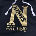 Introducing the PJ Mark Kings Era 1999 Hoodie in Black and Gold, perfect for those who love a retro look. This hoodie features a drawstring closure and long sleeves made with a comfortable cotton blend fleece material. It also has graphic print and zippers at the hem for added style. The relaxed fit and big & tall size make it a great choice for men who want to show off their love for hip hop. Machine washable and suitable for winter, fall, and spring seasons, this hoodie is a must-have for any fan of the genre.