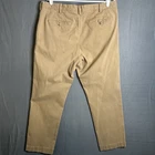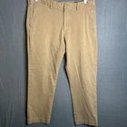 This is a pair of Polo Ralph Lauren chino pants for men in size 36x30. The pants are in a tan khaki color and feature a solid pattern with a stretch straight fit. They have a zip and button closure, flat front design, and slash pockets. Made of a cotton blend fabric with embroidered logo accents, these pants are suitable for various occasions such as travel, weddings, parties, casual or formal events.