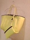 POPUPS Everday Tote Bag With Essentials Pouch, Neon Green Neoprene, $114 NWOT. Beautiful, vibrant color. It can look different under different lighting. Popular, utilitarian. Versatile use. Stands up. Well made with quality materials. Washable in cold water. Large, roomy, with inner pockets. Excellent condition, new without the tags and packaging, never worn, with no major flaws, damage, etc noted. Zoom in. See pics and illustrations with approximate measurements... Please see my other quality items including designer handbags, designer shoes, designer, vintage, semi-precious jewelry, Swiss watches, apparel, and home goods, etc. Thanks for looking.