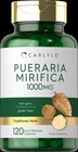 PUERARIA MIRIFICA: Traditional Asian herb whose roots contain naturally occurring phytoestrogens ROOT EXTRACT: Supplies the equivalent of 1,000 mg of Pueraria Mirifica per quick-release capsule ROOTED IN WELLNESS: Carlyle provides premium, honest supplements in your pursuit to healthy living CARLYLE MANUFACTURERS: Laboratory Tested, Trusted Ingredients, Superior Quality, 100% Guaranteed! NATURALLY FREE OF: Gluten, Wheat, Yeast, Lactose, Artificial Sweetener & Non-GMO Suggested Use: Take 2 capsules after a meal or with a full glass of water. "What is Pueraria Mirifica? Pueraria Mirifica is a traditional herb that is widely grown in certain parts of Thailand and Southeast Asia. This exotic plant has been used by men and women in herbal wellness practices dating back over 1,000 years! Its abundant, tubular-shaped roots contain naturally occurring phytoestrogens and other plant-derived antioxidants. Carlyle Pueraria Mirifica: At Carlyle, our premium herbal supplement delivers the equivalent of 1,000 mg of Pueraria Mirifica extract, in one daily capsule for maximum antioxidant support. We lab-test our herbs for purity and potency, ensuring you receive nothing, but the best nutritional benefit nature can offer. Enjoy exceptional value today with our 120-day supply! Rooted in Wellness: Our expertise in sourcing the purest ingredients combined with advanced technologies makes us proud to deliver premium, honest supplements at the best value. Carlyle Pueraria Mirifica are a testament to our commitment to excellence, made with powerful ingredients rooted in wellness. Thanks for choosing us in your pursuit of living healthy." WARNING: Not intended for use by pregnant or nursing women. If you are taking any medications or have any medical condition, consult your doctor before use. If any adverse reactions occur, immediately stop using this product and consult your doctor. Not intended for use by persons under the age of 18. If seal under cap is damaged or missing, do not use. Keep out of reach of children. Store in a cool, dry place.