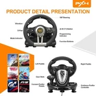 Multi-Platform Gaming Steering Wheel for PS4, PC, Xbox, PS3, Racing Pedal, V3II Multi-Platform Steering Wheel: Cross-platform gaming steering wheel, compatible with PS4, PS4 Slim, PS4 Pro, PS3, PC, Xbox Series X|S, Xbox One (X input and D input). Supports almost racing games: Game Racing Wheels is suitable for almost racing games like Need for Speed, Forza Horizon, Dirt, GTA, American Truck Simulator, Euro Truck Simulator. Professional PC Steering Wheel: Built-in Dual Vibration Motors. Smart dual-core, support X input and D input on PC, plug and play. With 3 adjustable sensitivity levels (medium/high/low), it is suitable for players with different gaming experience, with programming function, it is more convenient to experience the game. Ergonomic design: Grip with rubber texture coating, rubber grip for anti-slip and better tactile feel, two paddles attached to steering wheel for shifting function, large pressure sensitive pedal for acceleration function and very responsive braking function, Powerful suction cup with U-clip, easy to fix on all styles of tables.