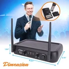 PYLE Lavalier, Headset Mics, Transmitter, Receiver-for PA, Karaoke Dj Party, Black, One Size (PDWM2140) DUAL CHANNEL: This black wireless microphone system by Pyle Pro has dual frequency channel and broad audio response range with low distortion so you can enjoy cordless singing to karaoke music and mobility for energetic on stage performance STABLE SIGNAL & CLEAR SOUND: This professional portable wireless microphone set has a channel frequency range of 174~216MHz and high signal over noise ratio performance for capturing high quality audio. Ideal for professional engagement, conference INDEPENDENT MIC VOLUME CONTROL: Each dynamic or clip lapel lav mic features its own volume control so you can balance the vocals as desired for a karaoke experience that both kids and adults will enjoy. Perfect for PA, Dj party CONVENIENT POWER SWITCH: Both the receiver and the dynamic mic has a power ON / OFF switch and the receiver has LED signal indicator light and dual independent antenna. Plug your unit into your mixer, amplifier, or speaker with a 1/4" mono cable WHAT'S IN THE BOX: The package includes a receiver base, handheld, lavalier and headset microphone, body pack transmitter, 1/4'' audio connection cable. The device can be used outdoor and indoor / personal home use