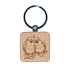Pair of Lovebirds Anniversary Valentine's Day Engraved Wood Square Keychain