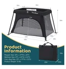 Our foldable crib is spacious enough for babies from 0 to 3 years old. It's soft mattress makes travel crib a comfy place for your baby to sleep at home or away The net weight is 12 lb lightweight reliable and built for endurance it's made of a 30 frame polyester fabric and reinforced stitching. The four corners of the bottom are evenly stressed to prevent the play yard from tilting and enhance the ability so your baby can play safely The sides of the play yard are made from soft and airy mesh fabric to allow your baby to breathe through the fabric. You can nurse cuddle or play with your little ones comfortably through the sides of the zipper door Portable and foldable design traveling with children typically involves a lot of luggage so it's good choice for travel like crib it's compact for packing and like to carry Included is one travel crib one mattress with washable sheet and one carry bag Dimensions 41 x 24 x 26