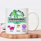 Papasaurus Mug Father's Day Mug Mug For Daddy Gift For Father's Day Dinosaur Product Details.. This high quality 11oz. ceramic white mug has a premium hard coat that provides crisp and vibrant color reproduction sure to last for years. Perfect for all hot & cold beverages. The highest quality printing possible is used. It will never fade no matter how many times you wash it. Material: 100% Ceramic. Print both sides. Dishwasher and Microwave Safe. High Gloss + Premium White Finish. Printed in the U.S.A. Personalized & Custom. We support personalized and custom mug to add custom, when placing an order, you can add notes to the "order note" in shipping address section. Also you can contact us directly via message. Shipping Info. Ready to ship in 1 to 2 business days, All products are made-to-order and proudly printed in the United States. Shipped by USPS and DHL, You will receive your order in 5-7 days. Replace & Refund. All products are defective during shipping broken, chipped will be replaced free of charge. You are not satisfied with the product, we will refund 100% money to you. If any other issues arise, please do not hesitate to message, we would be more than happy to assist you.