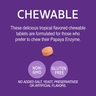 Papaya Enzyme is a delicious chewable tablet that supports digestive function. Suggested use As a dietary supplement, adults chew one (1) tablet with any meal, three (3) times daily or as directed by a healthcare provider. Do not exceed recommended dosage. Individual results may vary. Other ingredients Sucrose, sorbitol, natural pineapple flavor, cellulose, stearic acid, silicon dioxide. Contains <2% of: artificial color (FD&C yellow #6), magnesium stearate. No added salt, yeast, preservatives or artificial flavors. Warnings Keep out of reach of children. Do not use if product appears to be tampered with or seal is broken. Store at room temperature. Consult a healthcare provider prior to use if pregnant, nursing, on medications, have a medical condition or are planning a medical procedure. Stop use and contact a physician if adverse reactions occur. Potent formula for healthy digestive function 100 chewable full-serving tablets 22 mg papaya enzyme blend per serving Gluten Free