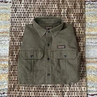 Embrace a blend of functionality and durability with the Patagonia Iron Forge Hemp Jacket in a versatile Desert Khaki color. A true vintage piece, this military-style jacket is crafted from a rugged cotton knit fabric that promises to endure the rigors of daily wear. It features a full zip front closure, button-down collar, and is designed to fit comfortably in a regular medium size. The jacket boasts a range of practical features including multiple pockets to secure your essentials. Its classic beige hue makes it an easy match with a variety of outfits, making it a staple for both outdoor adventures and casual urban escapades. Whether you're working outdoors or simply looking for a sturdy jacket with a bit of history, this Patagonia piece won't disappoint.