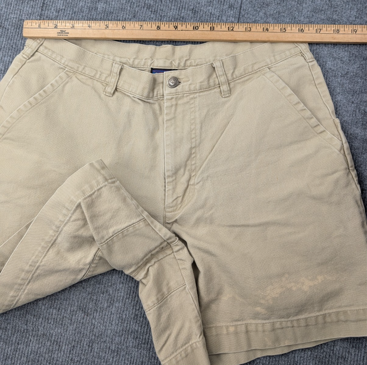 Brand: Patagonia Type: Shorts Department: Men Size: 34 Color: Beige Material: 100% Organic Cotton Style: Casual / Outdoor Closure: Button & Zipper Features: Belt Loops, Side Pockets Condition: Pre-owned Made In: Thailand UPC: 888052643402 Care Instructions: Machine wash cold with similar colors, tumble dry low