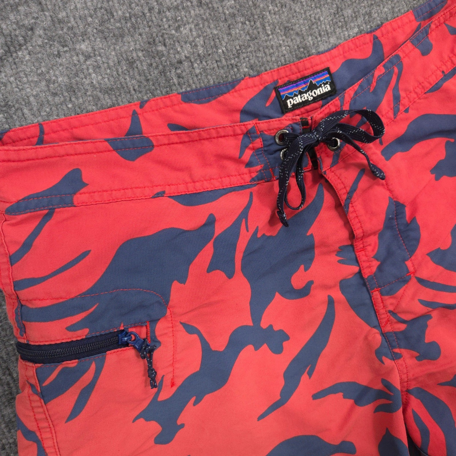 Patagonia Wavefarer Board Shorts Mens M Red Blue Geometric Abstract Unlined Swim Great Condition: A few small marks, some light wear on back, highlighted in last 3 photos. Shorts are missing inner label as pictured. Please see photos for measurements. Sold as pictured. Thanks for looking! -Measurements are approximate, please measure and check your favorite items at home to estimate fit -100% authenticity guaranteed -Items typically ship next business day