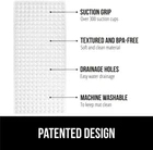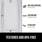 Patented Bathmat, 35x16, Clear, Bathtub Shower Mat, Plastic, Hexagon, Soft on Feet, Machine Washable, Suction Cups, Drainage Holes, BPA Free, Long Bath Tub Floor Mats PATENTED DESIGN WITH POWERFUL SUCTION GRIP: a bathmat designed to securely stay in place; the patented mat features hundreds of suction cups that effectively help secure the mat to your tub or shower floor EASY WATER DRAINAGE: hundreds of drainage holes allow for water to easily flow under the mat and towards the drain, helping to prevent water from sitting stagnant under the mat in your tub TEXTURED AND BPA-FREE: the mat is constructed from BPA free materials; it features a unique hexagon design with a pebble textured topside that is soft on feet; bathmat is soft, flexible, and perfect for the whole family OVERSIZED AND MACHINE WASHABLE: the bathmat is so easy to clean, simply machine wash and air dry; you can easily air dry the bathmat by hanging it over the side of the tub; generously sized mat measures 35 by 16 inches; much larger and longer than others, providing excellent coverage FOR ALL TUBS: bathmat fits all kinds of tubs and inserts; only install on smooth, clean, non textured and non tiled surfaces; not for use on newly refinished tubs, shower pans, or similar surfaces