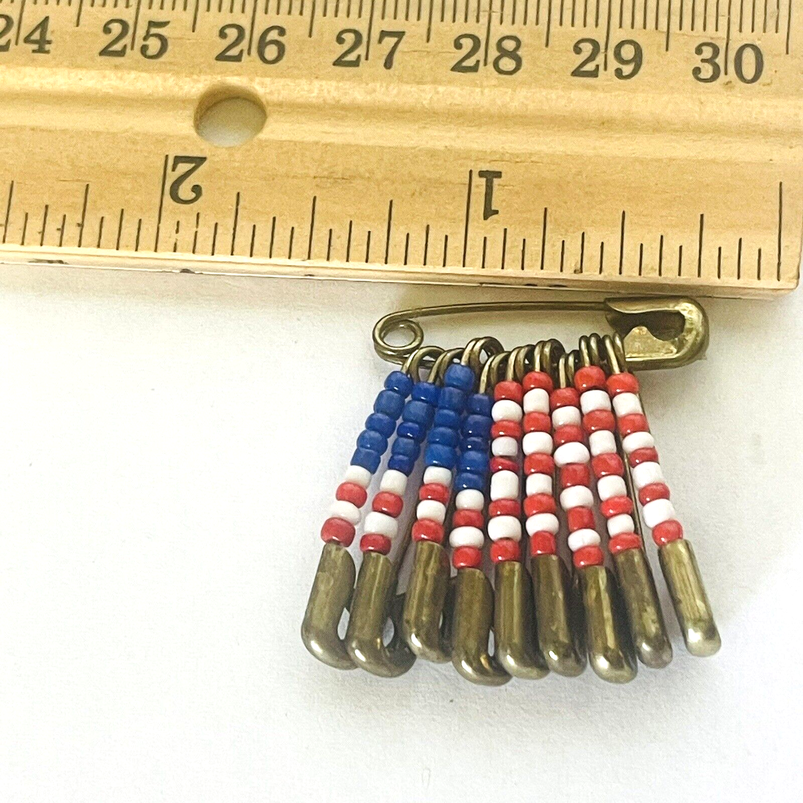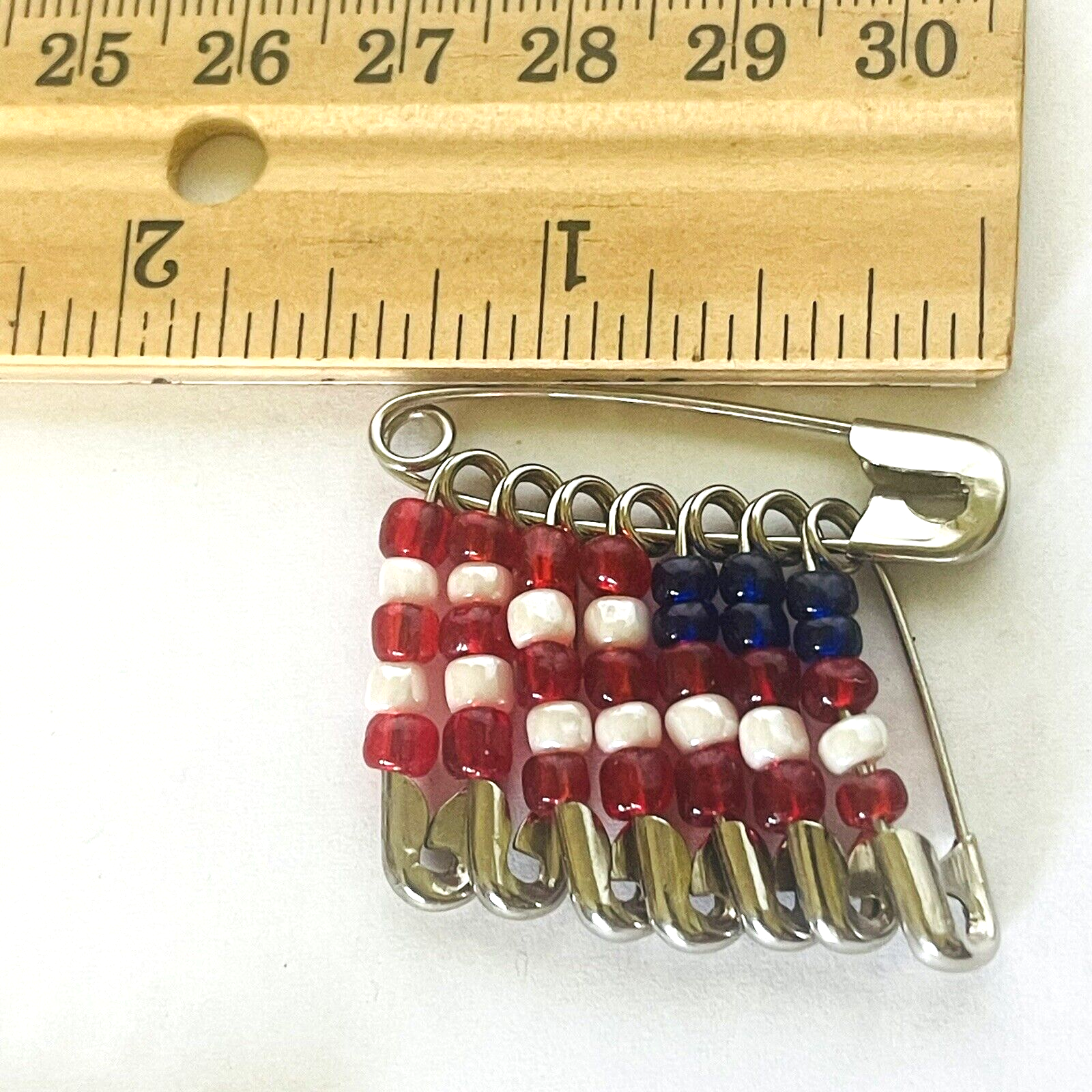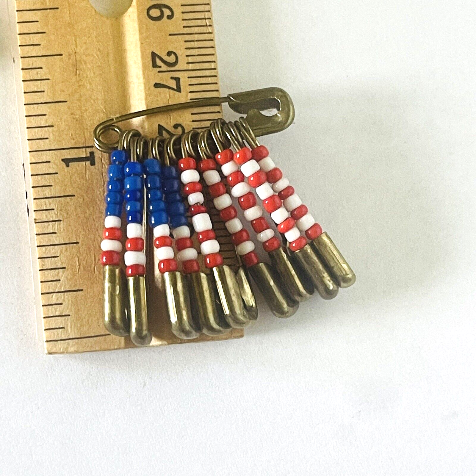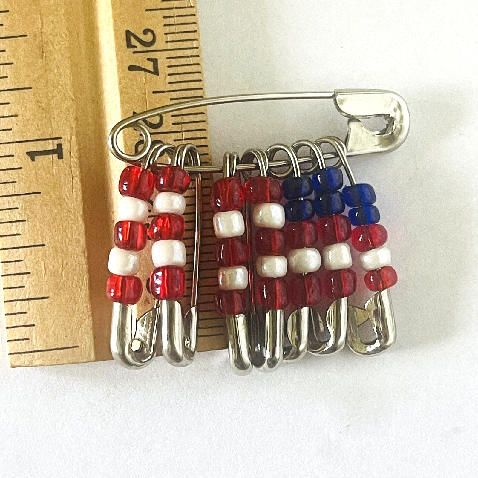 Collection of 5 handmade American Fag pins. Flags were made using safety pins and beads. Not 1 of the 5 is exactly the same. The beads, pins, size, design and age of each pin varies. You get exactly the pins that are pictured. See photos taken with ruler for details regarding size of each pin. See photos. Zoom for more detail and assessment of condition. Feel free to contact me with questions. I will create custom bundles & give discounts for purchases of more than one item/listing + combine shipping for extra savings. Quotes provided on request. All sales are final. Returns are not accepted; however your satisfaction is important to me. Please reach out if there is a problem with your purchase. Thanks! PassionatelyCollected I passionately collect things.....