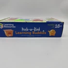 This is a Learning Resources Peek-a-Bird Learning Buddies activity toy, designed for children aged 18 months to 4 years old. The toy features 5 multicolor 2 piece bird houses and 5 birds and is intended to help develop motor skills. The manufacturer recommended age range is 18 months and up, and the toy is suitable for both boys and girls. Please see the photos for more information about this toy. It is brand new in the sealed box. There is a spot on the front where there was once a tag as can be seen in the pictures.