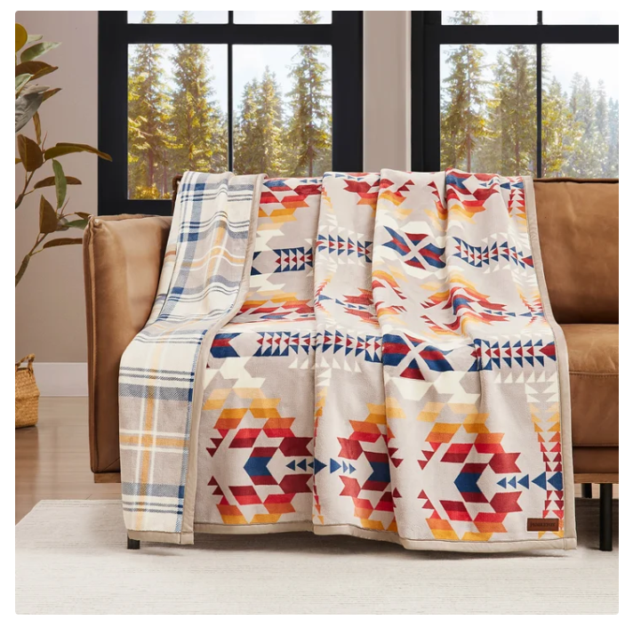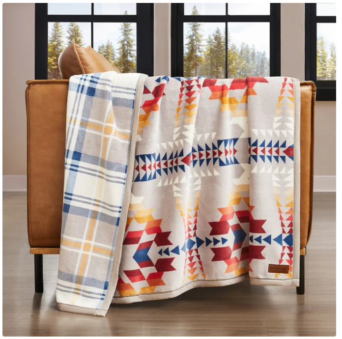 Pendleton Reversible Plush Throw-50x70in Legend Lake Gray 100% Polyester Condition is New without tags. “NEW WITHOUT TAG - WELL PACKAGED - CUSTOMER RETURN FROM WHOLESALE CLUB -EXCELLENT CONDITION - PICTURE 1 IS EXACT ITEM” FREE SHIPPING The Pendleton Reversible Plush Throw is a cozy and stylish addition to any bedroom or living space. Made of 100% polyester with a GSM range of 451 to 600, this rectangular throw features a multicolor striped pattern and a rustic/primitive style. Perfect for all seasons, this reversible throw is machine washable for easy care. The brand's quality and attention to detail make this a versatile and comfortable choice for teens, adults, and kids alike. Product Details Experience the perfect blend of comfort and design with this ultra-soft throw. Crafted for year-round warmth and featuring classic Pendleton printed patterns, it adds a cozy, stylish touch to any space. A home essential you’ll never want to put down. Features: Reversible design with different pattern on opposite side Luxuriously soft and cozy Faux suede binding around edge 600 GSM Made in: China Fabric Content: 100% Polyester Dimensions: 50" x 70" Care Instructions: Machine wash cold separately, gentle cycle Do not bleach Tumble dry low Do not iron