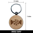 Peppermint Candy Engraved Wood Round Keychain Tag Charm