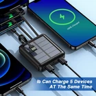 Mini : mini compact solar power charging bank with rounded corners, 3 * 3.2 * 0.75 inches, you can easily put it into your pocket, handbag, or comfortable grip. This is already the smallest and lightest mini solar power bank on the market. 4 Outputs+2 Inputs : Built in 4 data cable output ports ( for iOS/lighting, type-c, micro, USB) and 2 input ports ( for type-c, micro) can simultaneously charge 6 different devices, compatible with USB devices, without carrying a charging cable data cable. Ultra Large Capacity : The smallest and lightest 15000mah portable charger uses a 5V 2V or higher adapter charging input, which can charge your portable charger in 2 hours, 1.5 hours less than other power packs. It can meet the demand for charging mobile phones during a 60 hour trip. depending on the mobile device model, the charging frequency and fully charged duration may vary). Solar Power Charger : It allows chargers with solar panels to charge through solar energy. Due to the small size of the solar panel, please place it in direct sunlight and ensure that there are no obstacles blocking the surface of the solar panel. If solar panels are used indoors, in rainy or shaded areas with insufficient sunlight, the charging speed will be very slow. Please pay attention to this when placing an order. Intelligent LED Display Light : Real time display of remaining power, without guessing how much power the power bank has left or whether it needs to be charged. You Will Receive: Product List: 1 * 15000mAh Solar Power Bank, 1 * micro USB cable.