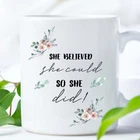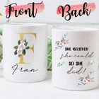 Personalised Monogrammed Mug She Believed She Could House Warming Gift Grad Gift Product Details.. This high quality 11oz. ceramic white mug has a premium hard coat that provides crisp and vibrant color reproduction sure to last for years. Perfect for all hot & cold beverages. The highest quality printing possible is used. It will never fade no matter how many times you wash it. Material: 100% Ceramic. Print both sides. Dishwasher and Microwave Safe. High Gloss + Premium White Finish. Printed in the U.S.A. Personalized & Custom. We support personalized and custom mug to add custom, when placing an order, you can add notes to the "order note" in shipping address section. Also you can contact us directly via message. Shipping Info. Ready to ship in 1 to 2 business days, All products are made-to-order and proudly printed in the United States. Shipped by USPS and DHL, You will receive your order in 5-7 days. Replace & Refund. All products are defective during shipping broken, chipped will be replaced free of charge. You are not satisfied with the product, we will refund 100% money to you. If any other issues arise, please do not hesitate to message, we would be more than happy to assist you.