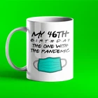 Personalised Mug My 46th Birthday The One With The Pandemic Birthday Mug Product Details.. This high quality 11oz. ceramic white mug has a premium hard coat that provides crisp and vibrant color reproduction sure to last for years. Perfect for all hot & cold beverages. The highest quality printing possible is used. It will never fade no matter how many times you wash it. Material: 100% Ceramic. Print both sides. Dishwasher and Microwave Safe. High Gloss + Premium White Finish. Printed in the U.S.A. Personalized & Custom. We support personalized and custom mug to add custom, when placing an order, you can add notes to the "order note" in shipping address section. Also you can contact us directly via message. Shipping Info. Ready to ship in 1 to 2 business days, All products are made-to-order and proudly printed in the United States. Shipped by USPS and DHL, You will receive your order in 5-7 days. Replace & Refund. All products are defective during shipping broken, chipped will be replaced free of charge. You are not satisfied with the product, we will refund 100% money to you. If any other issues arise, please do not hesitate to message, we would be more than happy to assist you.