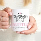Personalised Sentimental World's Best Auntie Ceramic Mug Cup Auntie Gift Best Product Details.. This high quality 11oz. ceramic white mug has a premium hard coat that provides crisp and vibrant color reproduction sure to last for years. Perfect for all hot & cold beverages. The highest quality printing possible is used. It will never fade no matter how many times you wash it. Material: 100% Ceramic. Print both sides. Dishwasher and Microwave Safe. High Gloss + Premium White Finish. Printed in the U.S.A. Personalized & Custom. We support personalized and custom mug to add custom, when placing an order, you can add notes to the "order note" in shipping address section. Also you can contact us directly via message. Shipping Info. Ready to ship in 1 to 2 business days, All products are made-to-order and proudly printed in the United States. Shipped by USPS and DHL, You will receive your order in 5-7 days. Replace & Refund. All products are defective during shipping broken, chipped will be replaced free of charge. You are not satisfied with the product, we will refund 100% money to you. If any other issues arise, please do not hesitate to message, we would be more than happy to assist you.