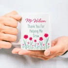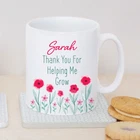Personalised Teacher Thank You For Helping Me Grow Ceramic Mug Cup Teacher Gift Product Details.. This high quality 11oz. ceramic white mug has a premium hard coat that provides crisp and vibrant color reproduction sure to last for years. Perfect for all hot & cold beverages. The highest quality printing possible is used. It will never fade no matter how many times you wash it. Material: 100% Ceramic. Print both sides. Dishwasher and Microwave Safe. High Gloss + Premium White Finish. Printed in the U.S.A. Personalized & Custom. We support personalized and custom mug to add custom, when placing an order, you can add notes to the "order note" in shipping address section. Also you can contact us directly via message. Shipping Info. Ready to ship in 1 to 2 business days, All products are made-to-order and proudly printed in the United States. Shipped by USPS and DHL, You will receive your order in 5-7 days. Replace & Refund. All products are defective during shipping broken, chipped will be replaced free of charge. You are not satisfied with the product, we will refund 100% money to you. If any other issues arise, please do not hesitate to message, we would be more than happy to assist you.