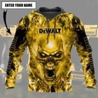 Personalized Dewalt Beautiful Tools Yellow Fire Flame Skull 3D Hoodie Size S-5XL