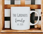 Personalized Family Name Established Mugs Coffee Mugs With Family Name Camping Product Details.. This high quality 11oz. ceramic white mug has a premium hard coat that provides crisp and vibrant color reproduction sure to last for years. Perfect for all hot & cold beverages. The highest quality printing possible is used. It will never fade no matter how many times you wash it. Material: 100% Ceramic. Print both sides. Dishwasher and Microwave Safe. High Gloss + Premium White Finish. Printed in the U.S.A. Personalized & Custom. We support personalized and custom mug to add custom, when placing an order, you can add notes to the "order note" in shipping address section. Also you can contact us directly via message. Shipping Info. Ready to ship in 1 to 2 business days, All products are made-to-order and proudly printed in the United States. Shipped by USPS and DHL, You will receive your order in 5-7 days. Replace & Refund. All products are defective during shipping broken, chipped will be replaced free of charge. You are not satisfied with the product, we will refund 100% money to you. If any other issues arise, please do not hesitate to message, we would be more than happy to assist you.