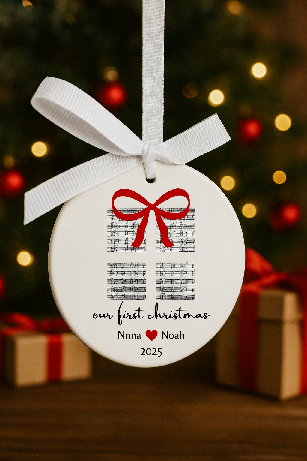 🎄 Celebrate Your First Christmas Together Mark the beginning of your forever story with our Personalized First Christmas Ceramic Ornament . Add your names, date, and a short phrase to create a keepsake you’ll cherish year after year. Whether on your holiday tree or as a gift to your partner, this ornament is a timeless reminder of love. ✨ Product Features Premium Ceramic Craftsmanship: Made from durable, high-gloss ceramic for a lasting shine that won’t fade. Perfect Size: Measures approx. 3" – ideal for your Christmas tree, gift box, or home décor. Ready to Display: Comes with a beautiful ribbon for effortless hanging anywhere. Gift-Ready Packaging: Each ornament arrives in an elegant gift box, perfect for gifting. 🚚 Fast Production & Shipping Ships Next Business Day once personalization details are received. Handled with care in our USA studio . Multiple shipping options: USPS First Class, Priority, and Express. Standard delivery: 2–5 business days (USA) . Expedited delivery: Priority Mail Express (1–3 business days) . 🌟 Why Couples Love Us Personalized with love: Every ornament tells your unique story. Made in USA: Printed and shipped locally for fast, reliable delivery. Perfect couples gift: Ideal for Christmas, engagements, or newlyweds. Keepsake quality: A decoration that becomes a lasting memory. 💡 How to Personalize Select the Personalized Option at checkout. Enter your names, year, and phrase (e.g., “Our First Christmas 2025”). We’ll design, print, and ship your ornament within 24 hours . 💌 More Ways to Celebrate Couples & Wedding Ornaments Anniversary Keepsakes New Home Ornaments Baby’s First Christmas & Baptism Ornaments 🔄 Return & Exchange Policy Because each ornament is custom-made, we generally do not accept returns. However, your happiness is our top priority — if there’s any issue with your order, we’ll work quickly to make it right. 📝 Personalization Box (200 characters) Enter names, year, and short phrase (e.g., “Our First Christmas 2025”). We print exactly as entered.