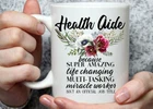 Personalized Health Aide Gift For Women L Thank You Appreciation Birthday Product Details.. This high quality 11oz. ceramic white mug has a premium hard coat that provides crisp and vibrant color reproduction sure to last for years. Perfect for all hot & cold beverages. The highest quality printing possible is used. It will never fade no matter how many times you wash it. Material: 100% Ceramic. Print both sides. Dishwasher and Microwave Safe. High Gloss + Premium White Finish. Printed in the U.S.A. Personalized & Custom. We support personalized and custom mug to add custom, when placing an order, you can add notes to the "order note" in shipping address section. Also you can contact us directly via message. Shipping Info. Ready to ship in 1 to 2 business days, All products are made-to-order and proudly printed in the United States. Shipped by USPS and DHL, You will receive your order in 5-7 days. Replace & Refund. All products are defective during shipping broken, chipped will be replaced free of charge. You are not satisfied with the product, we will refund 100% money to you. If any other issues arise, please do not hesitate to message, we would be more than happy to assist you.
