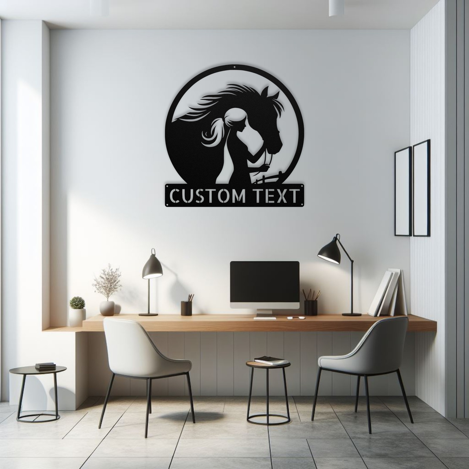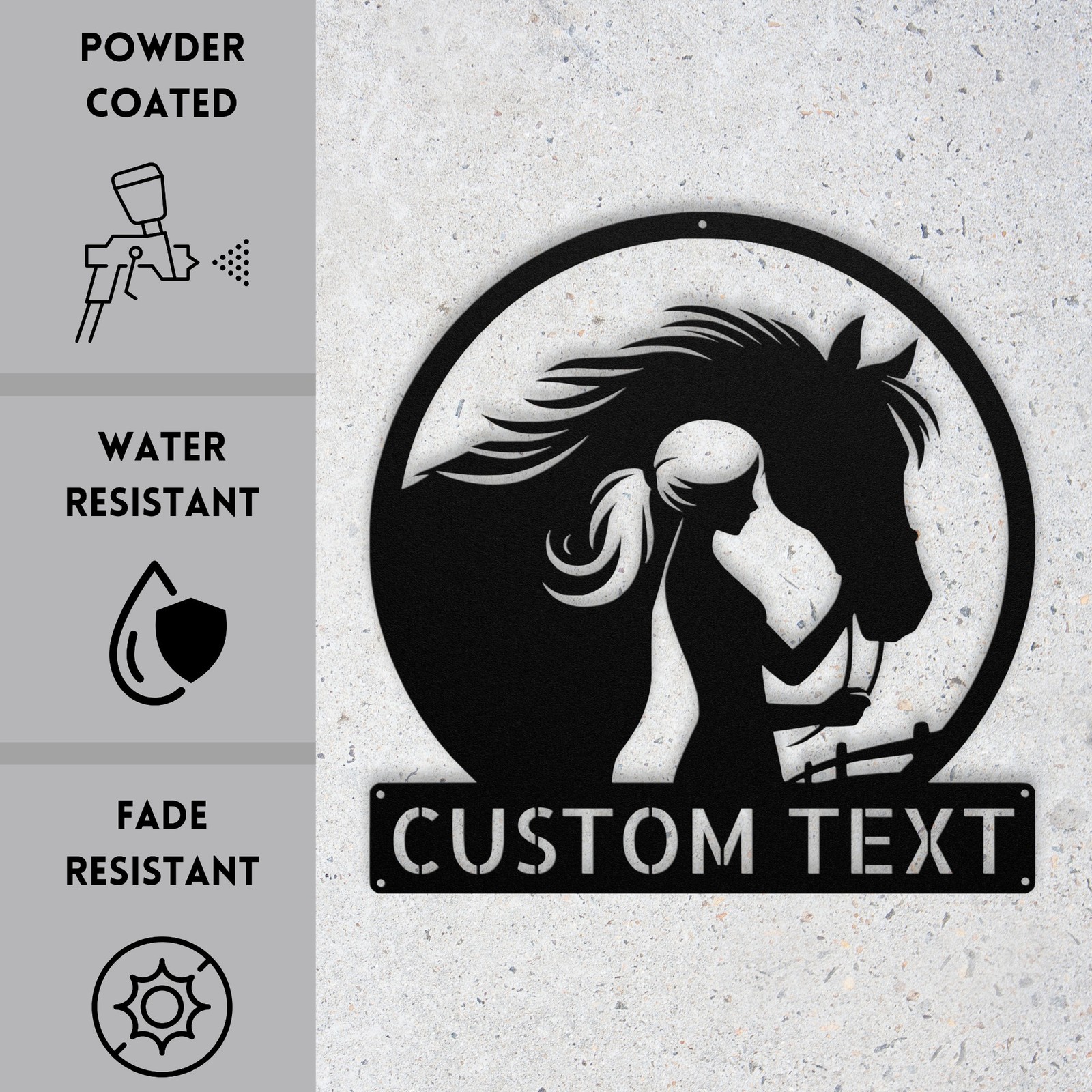 Product Description Enhance your home or stable decor with this charming Personalized Metal Sign featuring a girl with her horse. Made from high-quality 16-gauge metal , this custom wall art is designed for both indoor and outdoor use. Its durable powder coating ensures that it is dust, weather, and water-resistant , making it perfect for any environment. This personalized sign is not only a great addition to your space but also makes a thoughtful gift for Christmas, birthdays, or any special occasion . You can easily customize it with a name or a special message to make it truly unique. Whether you display it in your home, office, or barn, this sign will add warmth and personality to your decor. Key Features: Customizable : Add a name or message for a personal touch. Durable Material : Made from sturdy 16-gauge metal for long-lasting use. Weather Resistant : The powder-coated finish protects against dust, moisture, and outdoor elements. Versatile Use : Perfect for both indoor and outdoor decor. Great Gift Idea : A wonderful present for horse lovers for any occasion. Charming Design : Features a lovely depiction of a girl with her horse. Bring a personal touch to your decor with this Personalized Metal Sign . Itβs the perfect way to celebrate your love for horses or to surprise someone special with a unique gift. Order yours today! Service and Color Choice My metal signs are designed to be personalized just for you, making them the perfect addition to any space! The default color is Black , but I also offer a variety of beautiful options including Copper, Gold, White, and Silver . After placing your order, simply contact me with your preferred color choice, and I'll ensure your sign is exactly how you envision it. Letβs create something special together! π How Metal Signs Are Measured Metal signs are measured from the widest point to the opposite widest point of the design. The listed size (8β, 10β, 12β, 18β, 24β, 30β, 36β, etc.) always refers to the longest edge of the artwork, not the height only and not the width only. Because every design has its own shape and proportions, the other dimension (height or width) will adjust automatically . π Example (30-Inch Size) When selecting a 30-inch sign , the longest side of the design will measure 30 inches . If the design is wider than it is tall: Width = 30 inches Height adjusts proportionally (often around 18β22 inches depending on the design) If the design is taller than it is wide: Height = 30 inches Width adjusts proportionally This ensures the sign keeps its correct proportions and the original shape, no matter which size is selected. π¨ Custom Designs & Logos Welcome Have a special idea in mind? I can make it happen! Whether you need a business logo , family emblem , pet silhouette , or a one-of-a-kind design , I can create it from scratch and turn it into a high-quality metal sign. You can send your concept, sketch, or photo, and Iβll handle the custom design, editing, and production from start to finish. Your vision becomes real metal artwork made exactly the way you want it. β¨ Custom Any Design: If you have a special idea in mind, I can turn it into a metal sign, just message me! π¦ Ordering & Gift-Ready Each sign is crafted to order with great care and attention to detail. Your piece arrives ready to hang , making it easy to display or give as a thoughtful gift. Whether it's for your home or for someone special, every sign is made to impress and last for years. π Your support means the world to me and my family. Thank you for helping keep this small art business growing. π Production & Shipping Every sign is made to order with a fast turnaround time. Production Time: 1β2 business days Free Shipping: UPS Ground (estimated 2β5 business days ) Expedited Shipping: FedEx 2-Day Delivery available at checkout Shipping Location: All orders ship from Indiana, USA Each order is packed securely to ensure your metal sign arrives safely and ready to display.