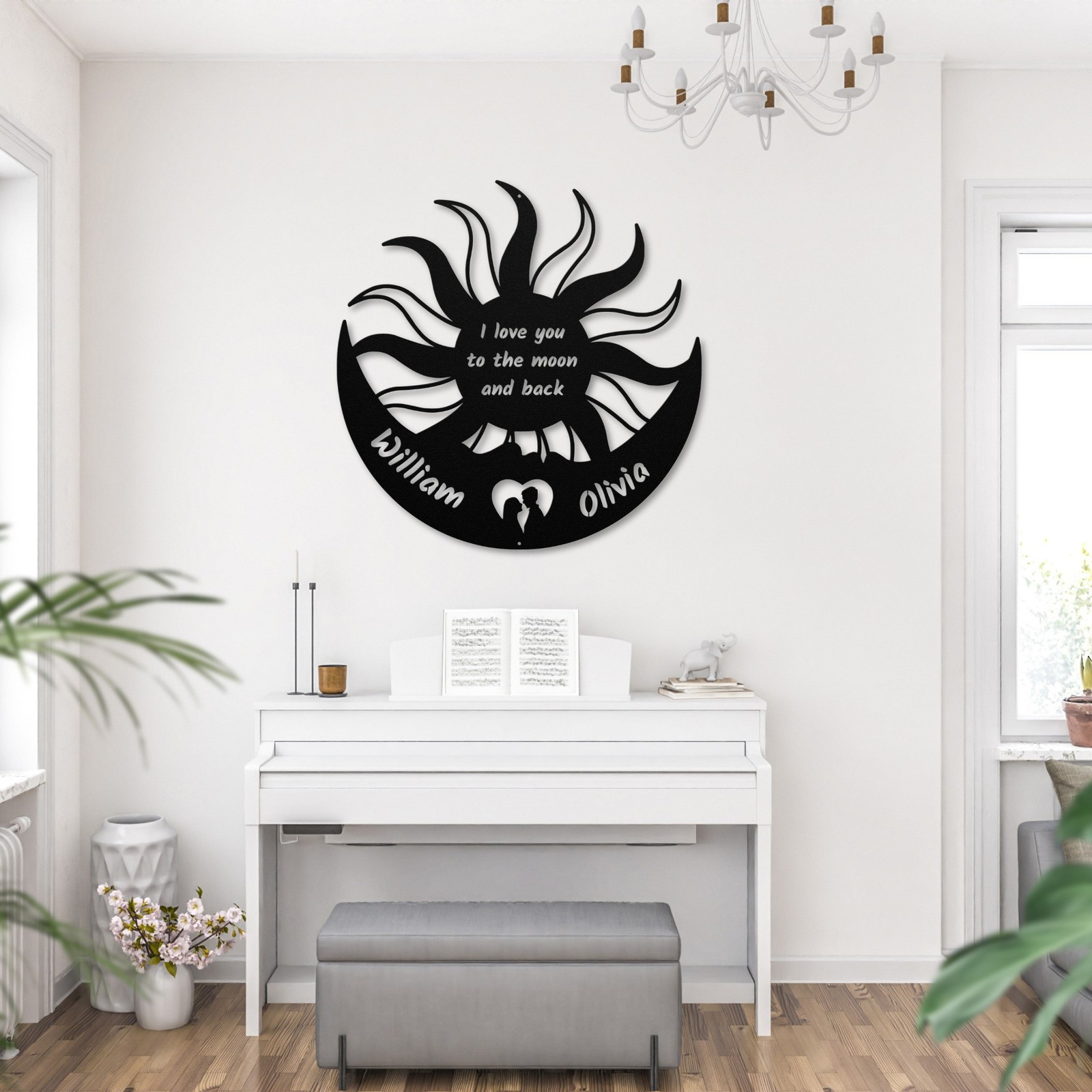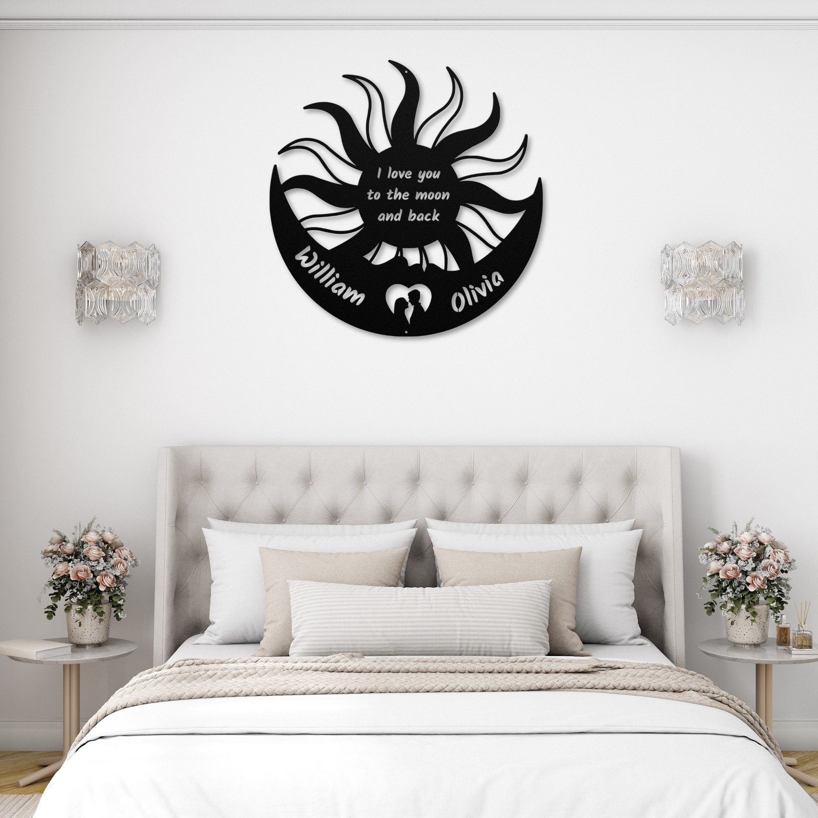 Product Description Bring a touch of magic to your home with our Personalized Moon and Sun Couple Metal Sign ! This beautifully crafted sign symbolizes love and unity, making it a perfect addition to any space. Made from 16 gauge high-quality metal , this sign is both durable and elegant. The powder coating ensures it is dust, weather, and water-resistant , so it will maintain its charm for years to come. Key features include: Customizable Design: Personalize your sign with names or a special date for a unique touch. Durable Material: Built to withstand the elements, perfect for indoor or outdoor display. Ideal Gift: A thoughtful gift for Christmas, birthdays, anniversaries, or any special occasion. Charming Decoration: Perfect for your home, office, or as a romantic touch in any space. Celebrate your love story with the Personalized Moon and Sun Couple Metal Sign . Make it a treasured piece in your decor or gift it to someone special! Service and Color Choice My metal signs are designed to be personalized just for you, making them the perfect addition to any space! The default color is Black , but I also offer a variety of beautiful options including Copper, Gold, White, and Silver . After placing your order, simply contact me with your preferred color choice, and I'll ensure your sign is exactly how you envision it. Letβs create something special together! π How Metal Signs Are Measured Metal signs are measured from the widest point to the opposite widest point of the design. The listed size (8β, 10β, 12β, 18β, 24β, 30β, 36β, etc.) always refers to the longest edge of the artwork, not the height only and not the width only. Because every design has its own shape and proportions, the other dimension (height or width) will adjust automatically . π Example (30-Inch Size) When selecting a 30-inch sign , the longest side of the design will measure 30 inches . If the design is wider than it is tall: Width = 30 inches Height adjusts proportionally (often around 18β22 inches depending on the design) If the design is taller than it is wide: Height = 30 inches Width adjusts proportionally This ensures the sign keeps its correct proportions and the original shape, no matter which size is selected. π¨ Custom Designs & Logos Welcome Have a special idea in mind? I can make it happen! Whether you need a business logo , family emblem , pet silhouette , or a one-of-a-kind design , I can create it from scratch and turn it into a high-quality metal sign. You can send your concept, sketch, or photo, and Iβll handle the custom design, editing, and production from start to finish. Your vision becomes real metal artwork made exactly the way you want it. β¨ Custom Any Design: If you have a special idea in mind, I can turn it into a metal sign, just message me! π¦ Ordering & Gift-Ready Each sign is crafted to order with great care and attention to detail. Your piece arrives ready to hang , making it easy to display or give as a thoughtful gift. Whether it's for your home or for someone special, every sign is made to impress and last for years. π Your support means the world to me and my family. Thank you for helping keep this small art business growing. π Production & Shipping Every sign is made to order with a fast turnaround time. Production Time: 1β2 business days Free Shipping: UPS Ground (estimated 2β5 business days ) Expedited Shipping: FedEx 2-Day Delivery available at checkout Shipping Location: All orders ship from Indiana, USA Each order is packed securely to ensure your metal sign arrives safely and ready to display.