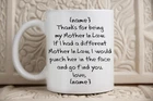Personalized Mother In Law Mug Funny Gift For Mothers In Law Birthday Gift For Product Details.. This high quality 11oz. ceramic white mug has a premium hard coat that provides crisp and vibrant color reproduction sure to last for years. Perfect for all hot & cold beverages. The highest quality printing possible is used. It will never fade no matter how many times you wash it. Material: 100% Ceramic. Print both sides. Dishwasher and Microwave Safe. High Gloss + Premium White Finish. Printed in the U.S.A. Personalized & Custom. We support personalized and custom mug to add custom, when placing an order, you can add notes to the "order note" in shipping address section. Also you can contact us directly via message. Shipping Info. Ready to ship in 1 to 2 business days, All products are made-to-order and proudly printed in the United States. Shipped by USPS and DHL, You will receive your order in 5-7 days. Replace & Refund. All products are defective during shipping broken, chipped will be replaced free of charge. You are not satisfied with the product, we will refund 100% money to you. If any other issues arise, please do not hesitate to message, we would be more than happy to assist you.
